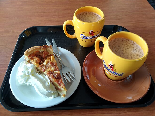 再食返件蘋果批同飲杯熱熱嘅朱古力奶Chocomel就啱啱好