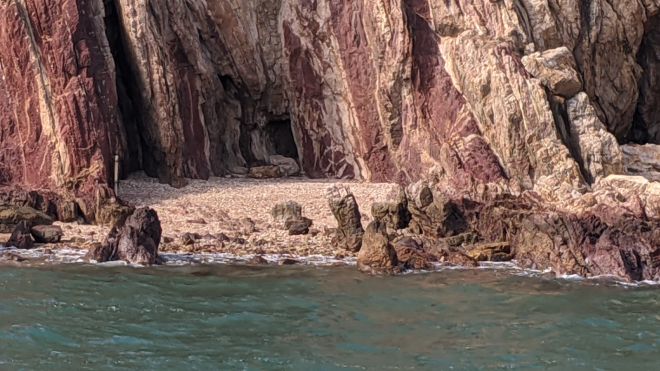 岸邊啲岩石因為鐵質豐富而呈現火紅色㗎