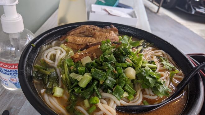 麻香手撕雞金銀蛋芫茜湯米線