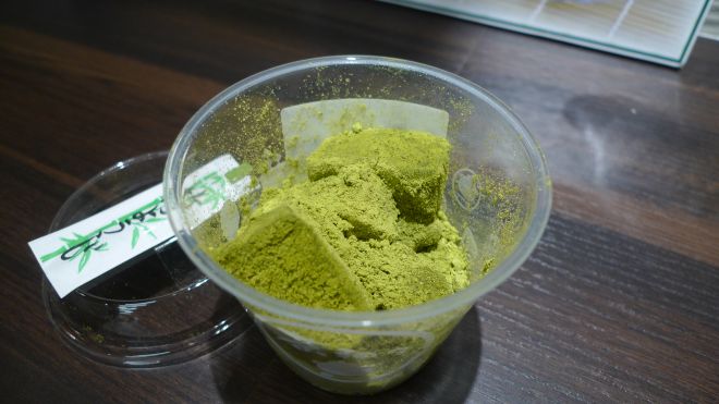 甘苦嘅味道咬住微軟韌韌地嘅蕨餅