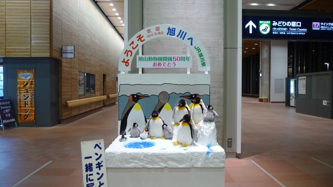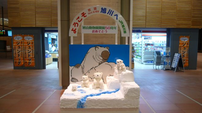 車站裡面有旭山動物園開園50周年嘅裝飾