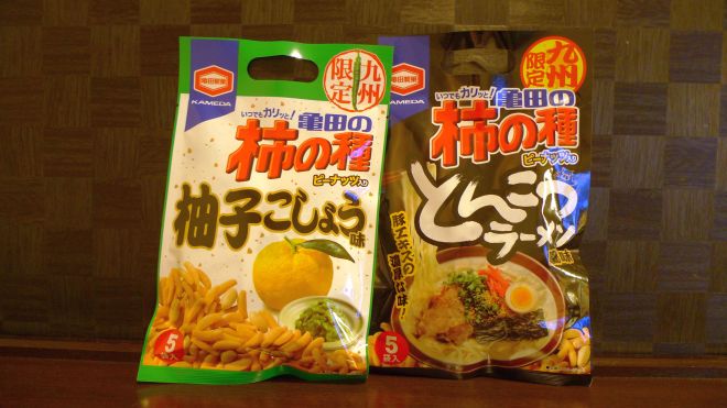 (左)亀田の柿の種 柚子こしょう味