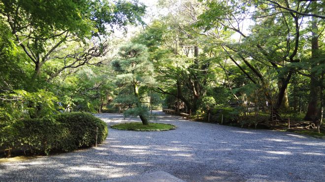 闊25米進深10米鋪著白砂砂紋wave嘅庭院
