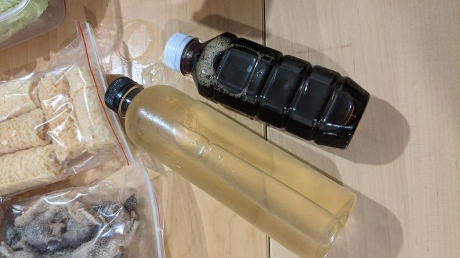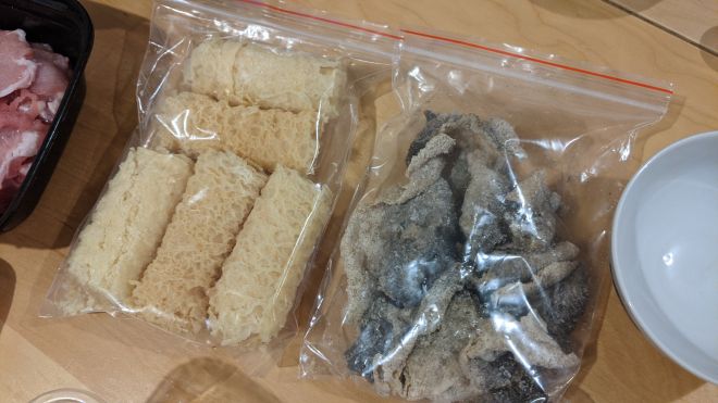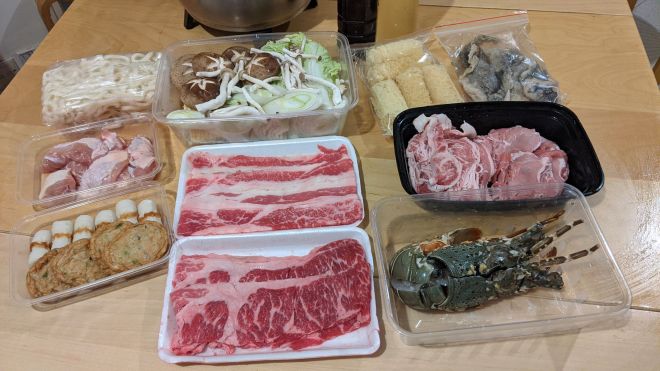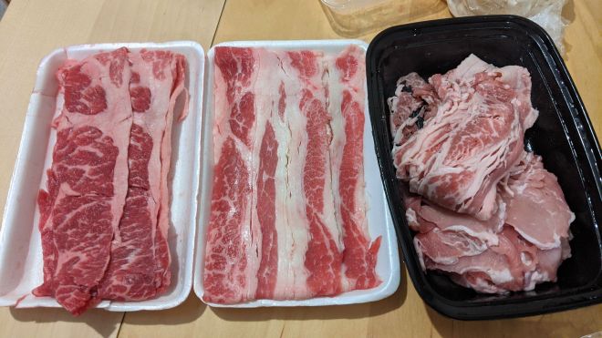 右手邊嘅厚疊疊肥牛們未完全解凍鰹魚湯汁倒完都仲有冰 XD