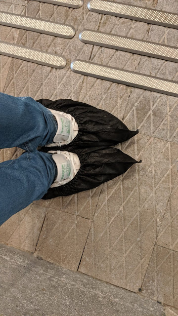 着好鞋套就一嘢飆上三樓