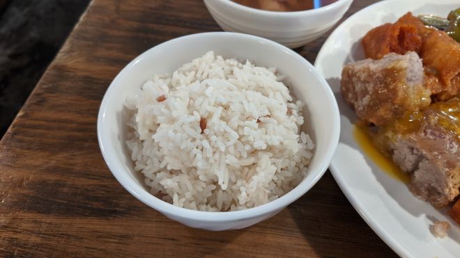 白飯係任裝嘅,話係白飯裡面係有粒粒紅米