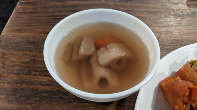 湯料有蓮藕甘筍粟米嗰啲加埋豆就好清甜