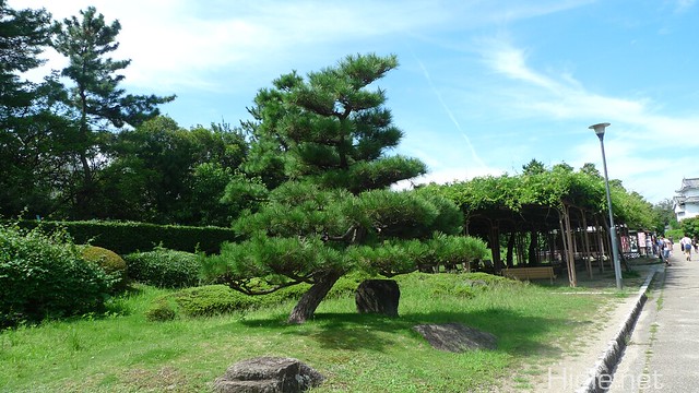 在一條波波樹路,看到了名古屋城的頂端
