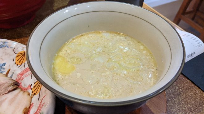 味道係較清淡嘅奶黃色湯底