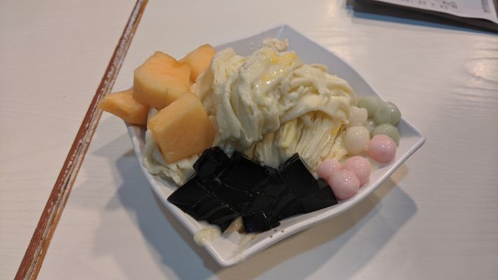 pastel系嘅小丸子;黑色嘅涼粉;