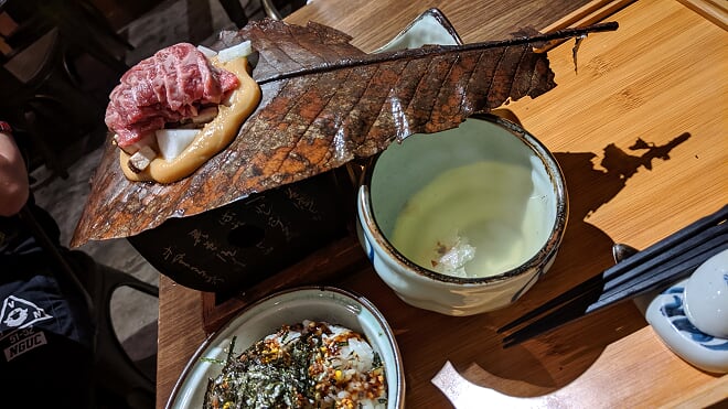 麵豉醬有啲重手可完全沾滿每一片牛