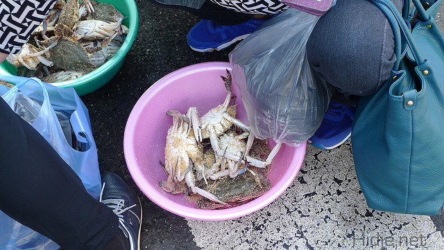 商販就直接將放在箱子的蟹