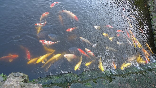 偃月橋下,肥嘟嘟嘅鯉魚們游嚟游去