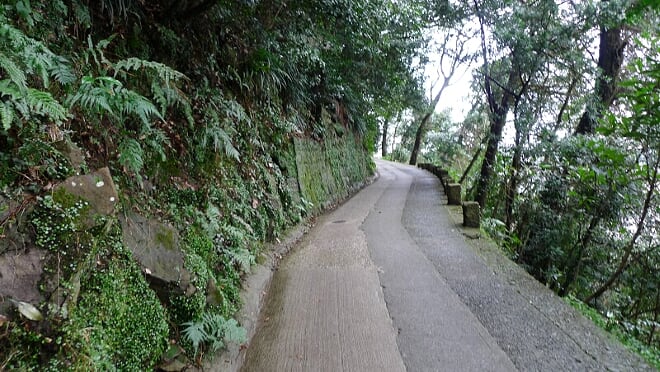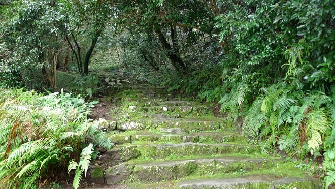 陡峭嘅石階佈滿住青苔