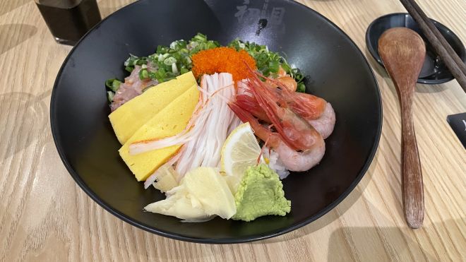 初見四式刺身丼配味噌湯