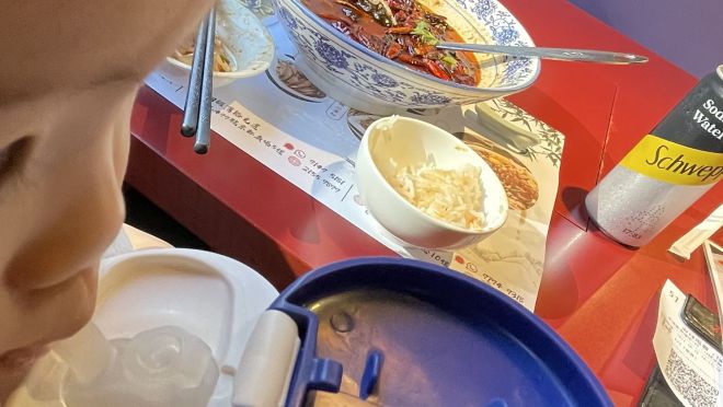 佢食咗筷子一滴麻辣後就猛隊水