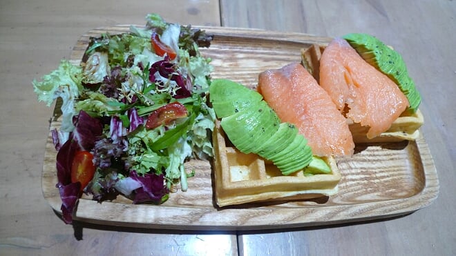 牛油果及煙三文魚窩夫沙律