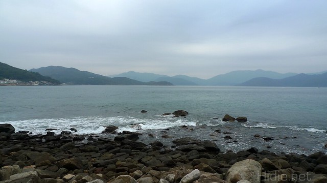 然後沿著海邊