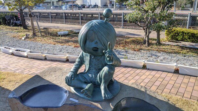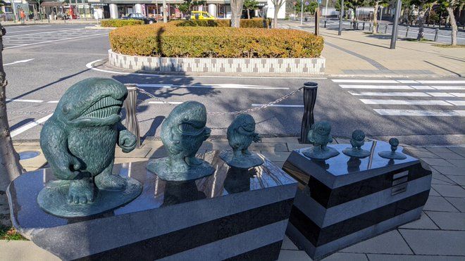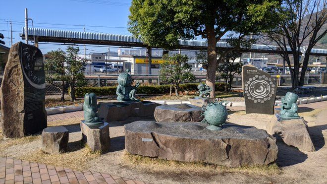 河童の三平、タヌキ、カッパ像