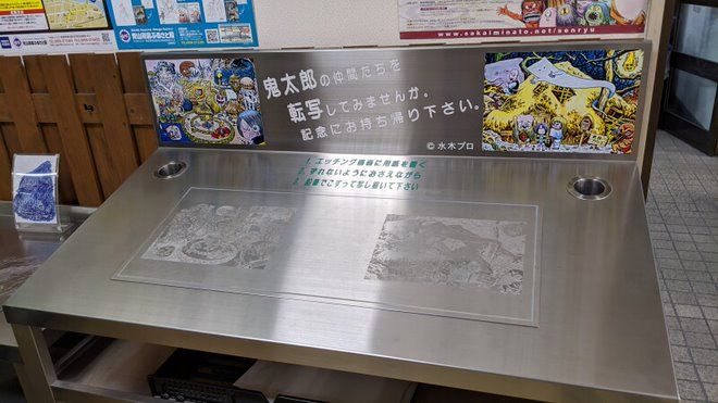 巴士站裡面有鬼太郎鉛筆刮刮畫