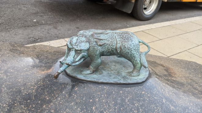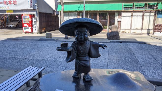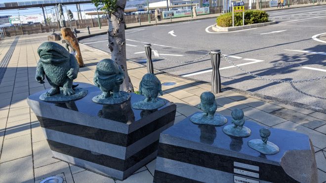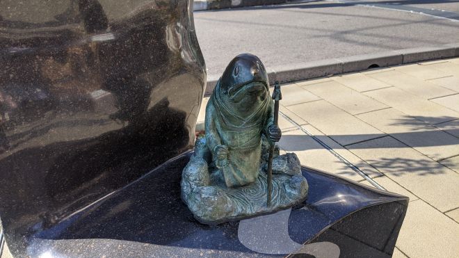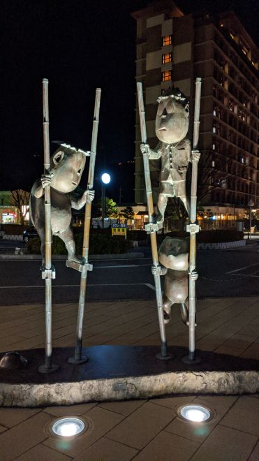 河童の三平、タヌキ、カッパ像