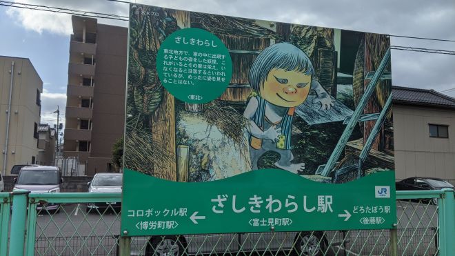 富士見町駅 |「ざしきわらし」駅 (呃!原來影漏咗博労町駅 |「コロポックル」駅)