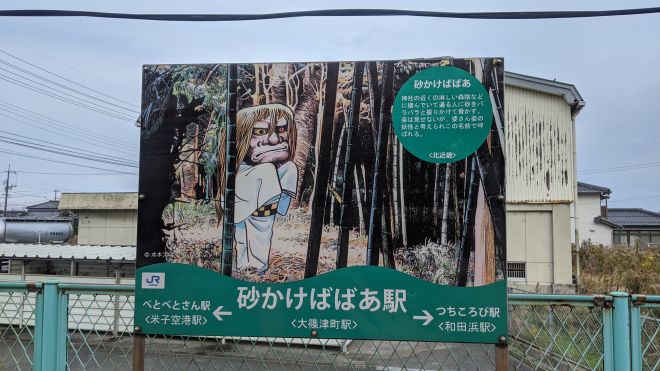 大篠津町駅 |「砂かけばばあ」駅